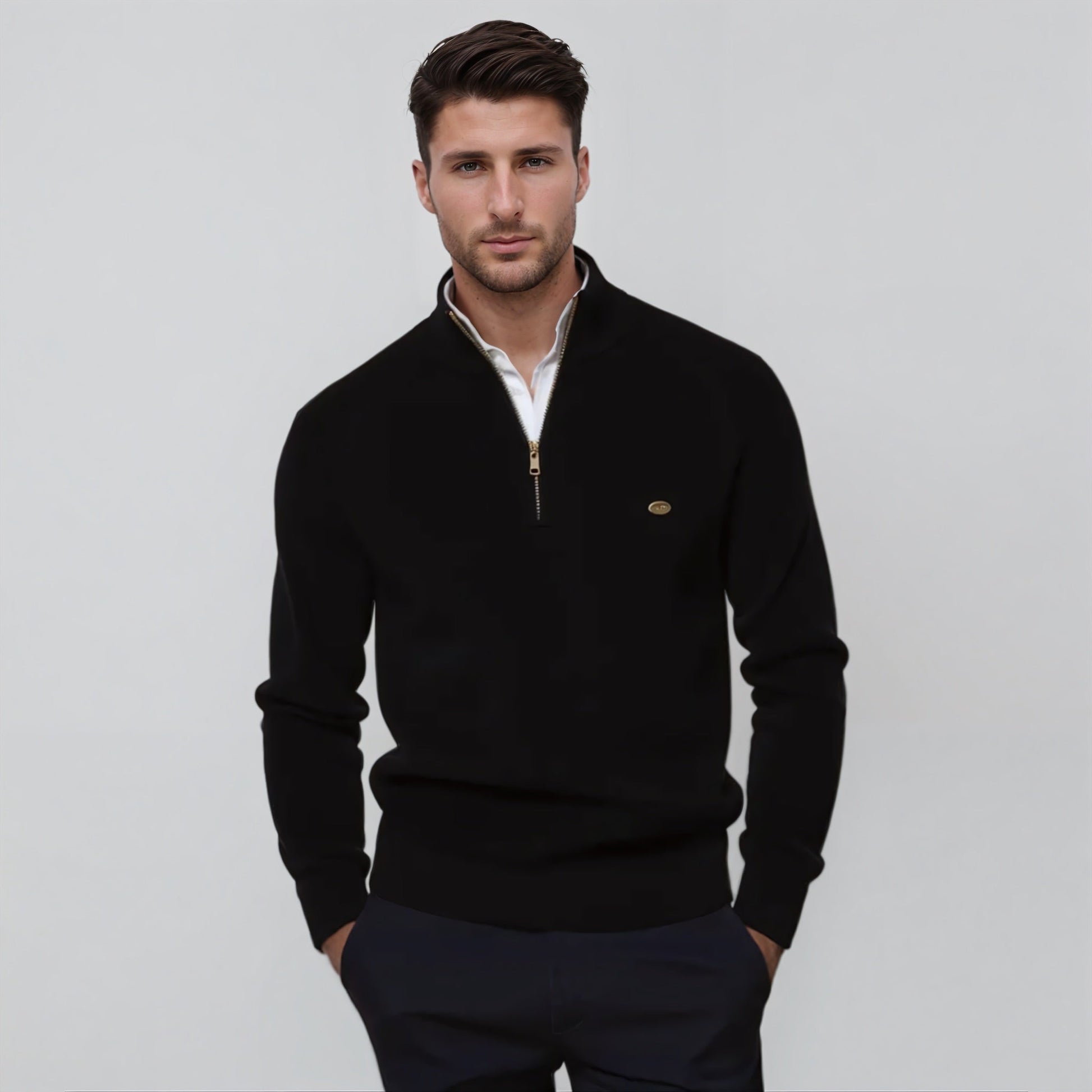 This black half-zip sweater is a timeless, versatile piece that offers both sophistication and casual appeal. Here's what makes it noteworthy: